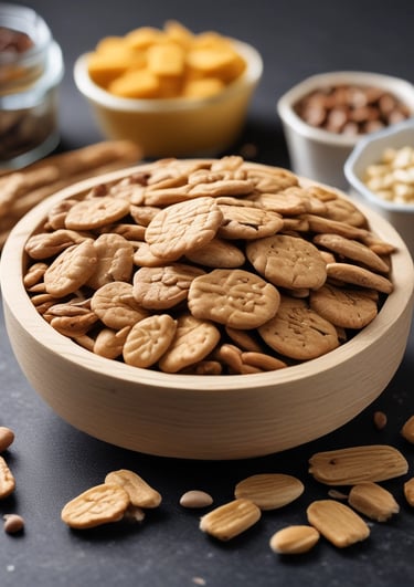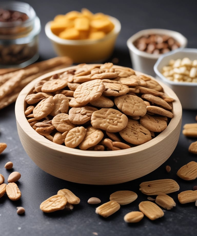 Krekeriai, riešutai, saulėgrąžos ir kt.